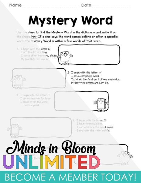 This printable resource offers mystery word practice for language students. Teachers can use it to help students practice vocabulary and spelling skills. Students will fill in letters to reveal a hidden mystery word. This activity is great for independent work or as a literacy center.