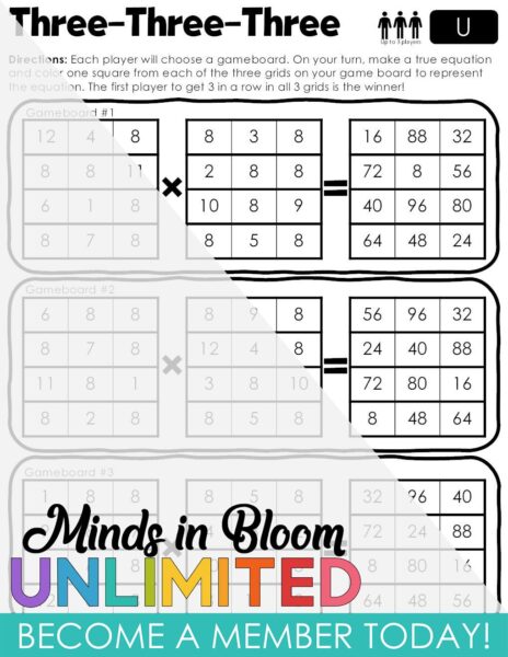 The Factz B Game – MULTIPLICATION THREE-THREE-THREE – x2 fact family