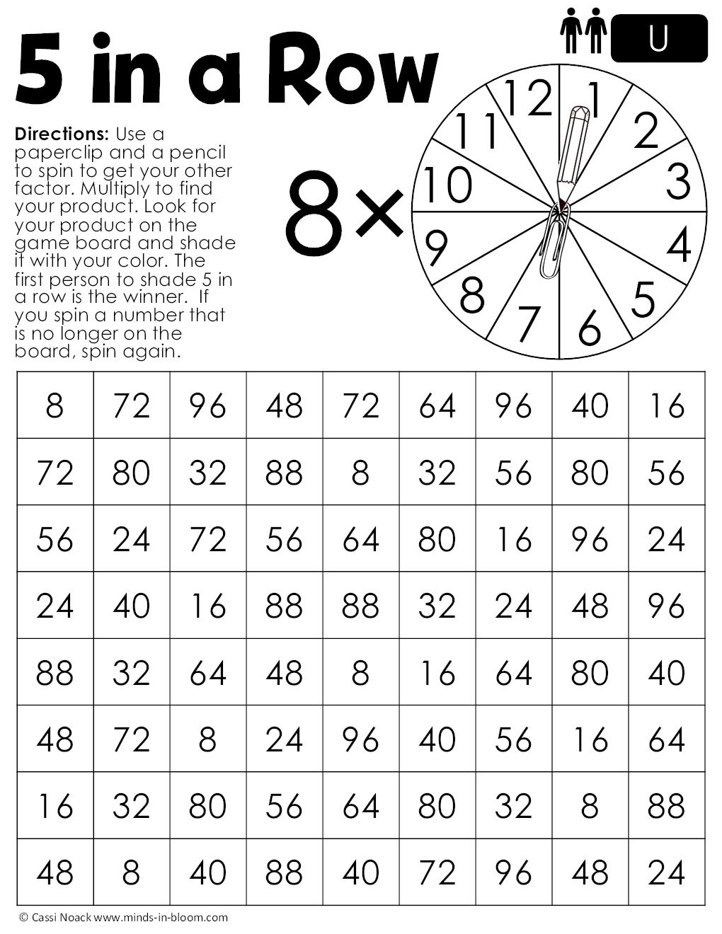 The Factz U Multiplication Game – 5 IN A ROW – x8 fact family