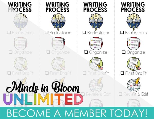 This printable resource focuses on “writing process bookmarks,” guiding students through brainstorming, organizing, drafting, revising, and editing to a final draft. It helps students practice the critical steps in the writing process. Teachers can use these bookmarks during writing centers, small group instruction, or independent work to support students in developing their writing skills effectively.